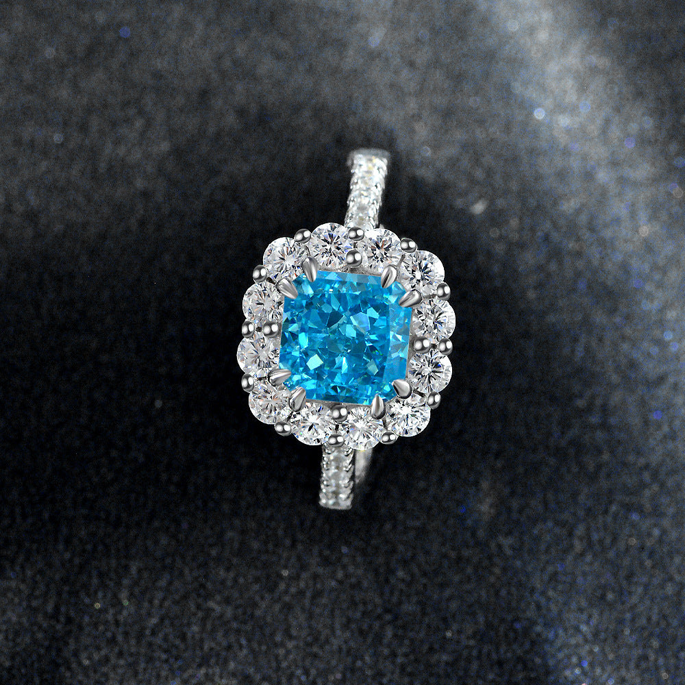 1.5 Carat Pink Ice-Flower Cut Diamond Ring – S925 Silver Adjustable Open Design, Modern European Style