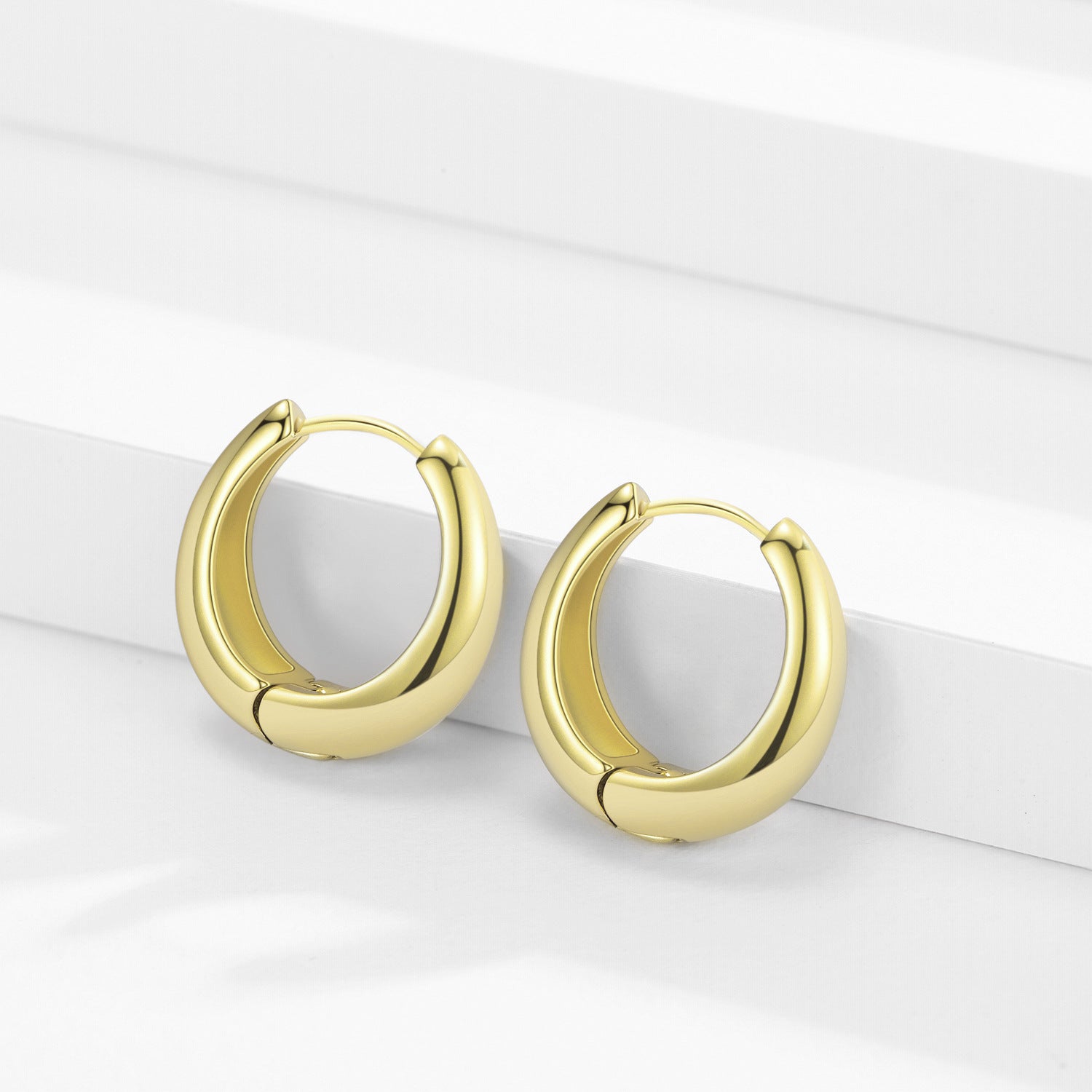 These 18k Gold plated earrings feature a modern circle hoop style, adding a touch of elegance to any outfit. Made with high-quality materials, they offer a sophisticated and versatile accessory for any occasion. Elevate your style with these timeless earrings.