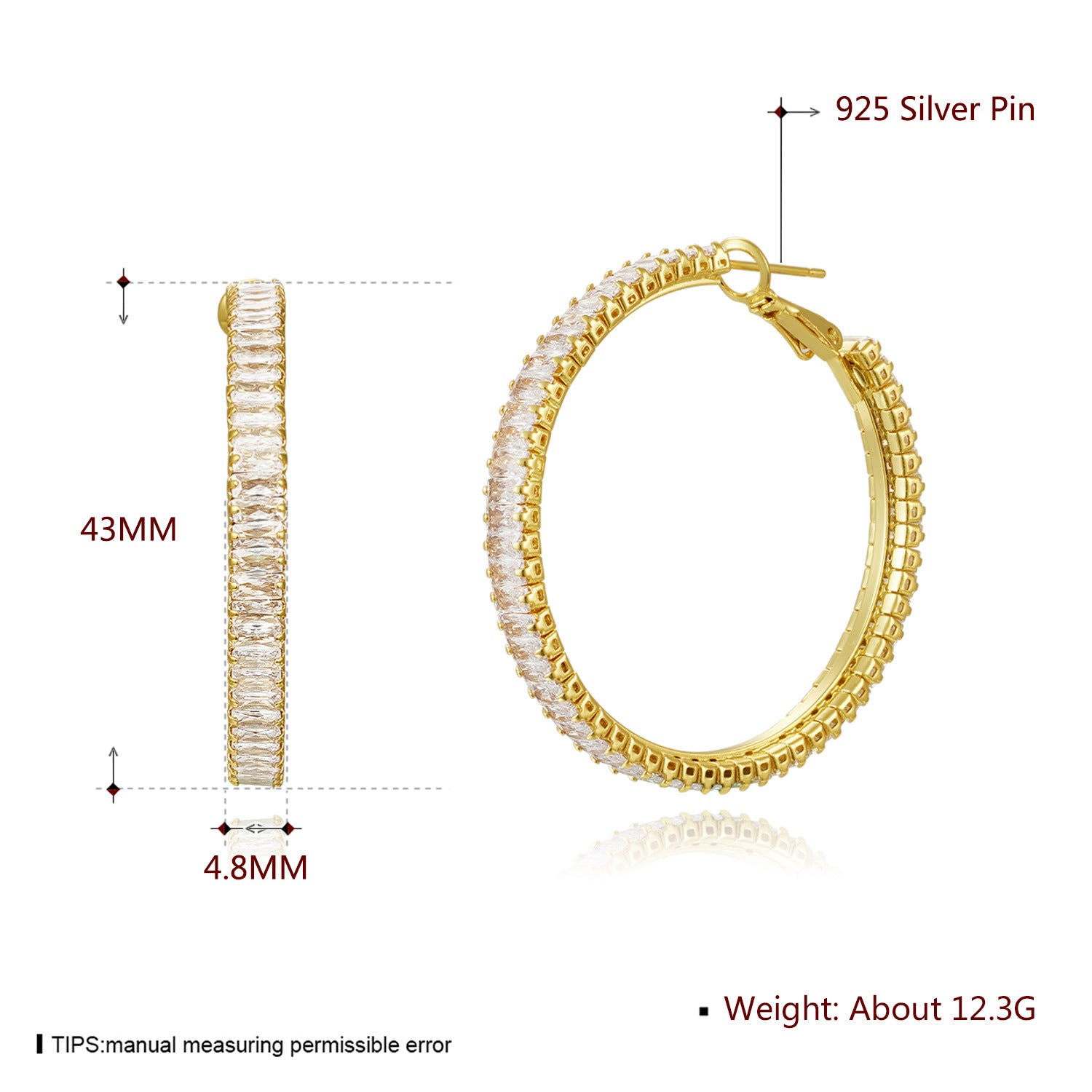 Enhance your style with our stunning 18k Gold plated earrings adorned with sparkling crystals. These hoops will add a touch of elegance to any outfit, making you stand out from the crowd. Upgrade your jewelry collection with these timeless and versatile pieces.