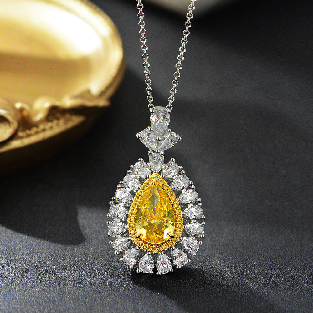 2025 New 3Ct Teardrop Ice-Cut Goose Yellow 8x12mm High-Carbon Diamond 925 Silver Necklace