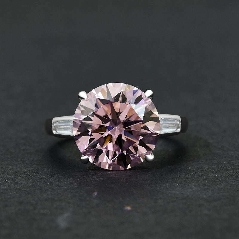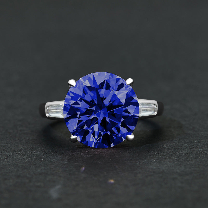 6 Carat 12mm Round Brilliant 5A Simulated Diamond Ring – Sterling Silver Luxury Wedding Jewelry for Women