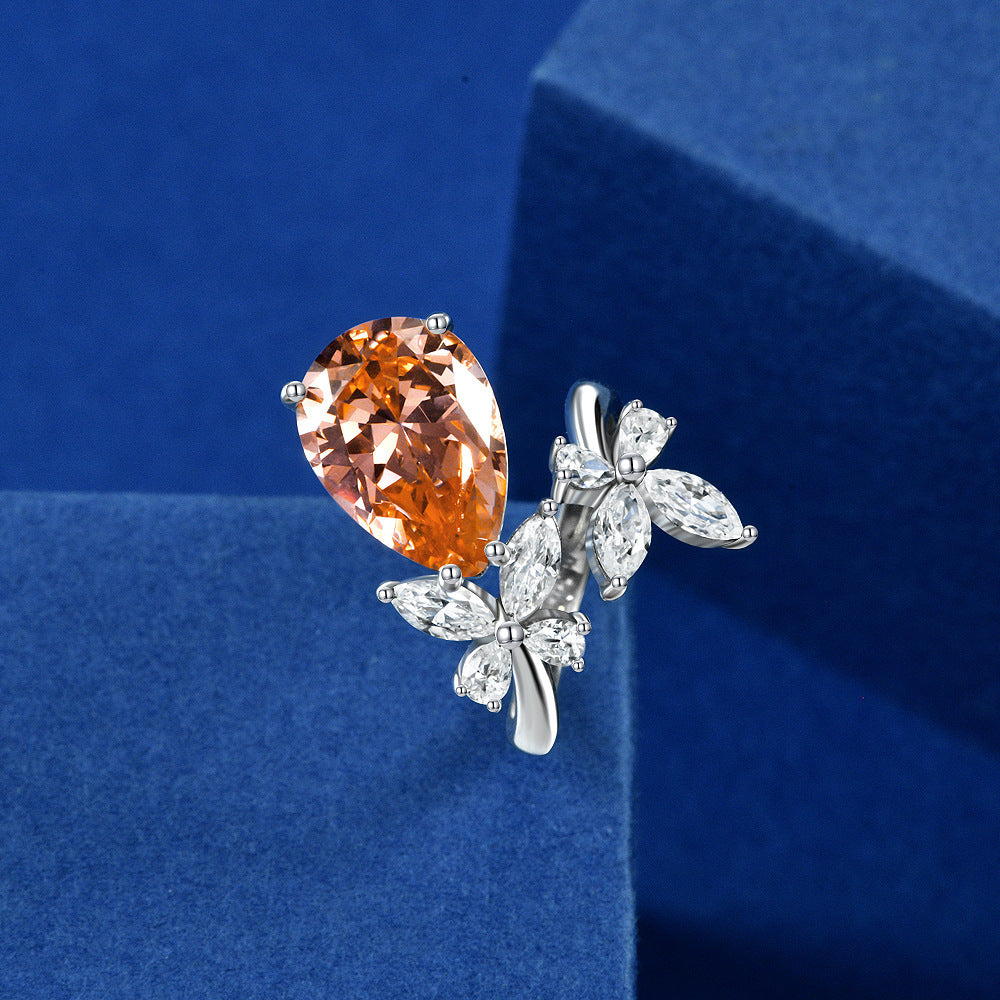 5 Carat Pink Pear Cut High Carbon Diamond Open Ring – Butterfly Accent, Trendy Minimalist Style