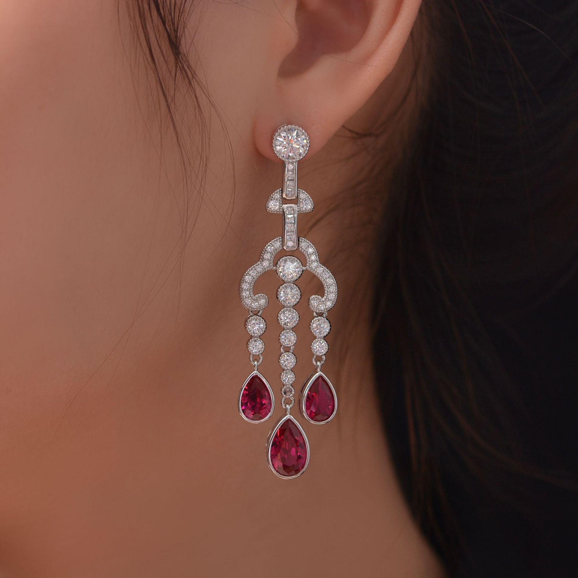 Sterling silver earrings 925 classic bold ruby