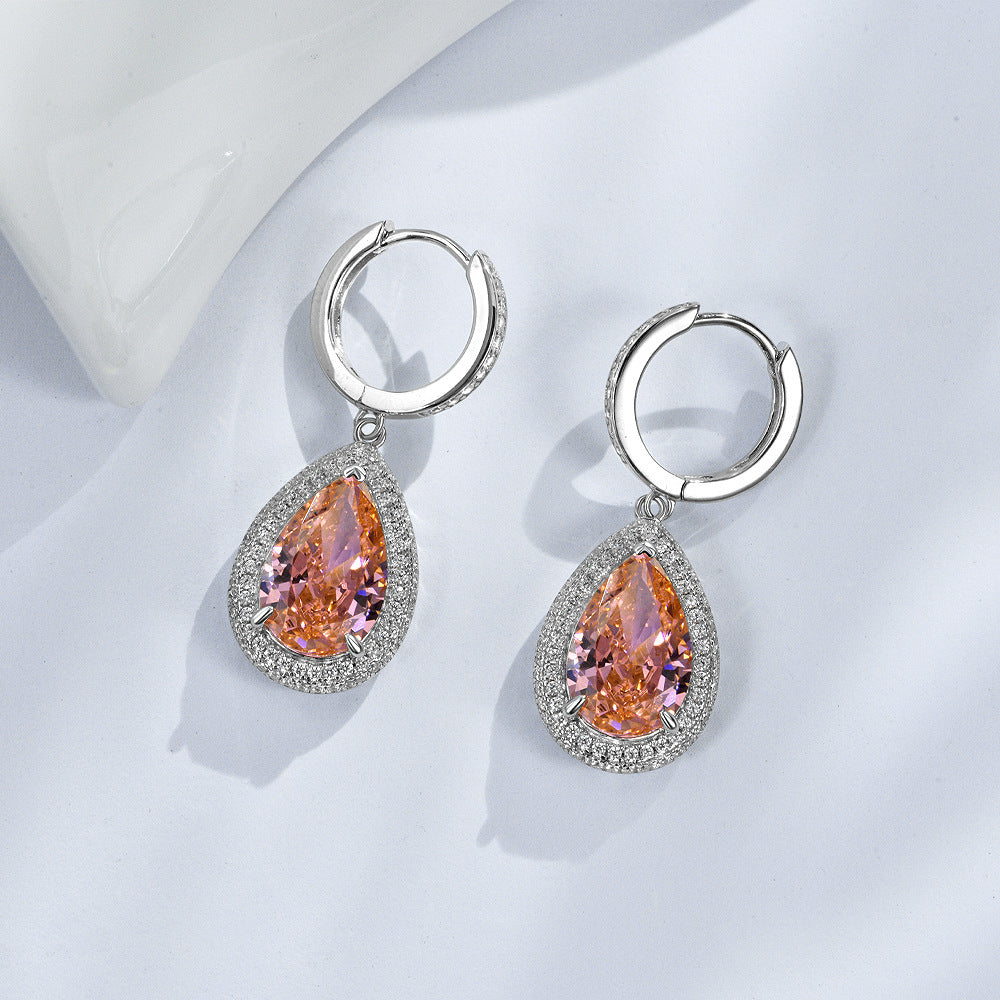 Elevate your style with these sterling silver earrings featuring a stunning 9ct pear-shaped Padparadscha diamond, measuring 9x14mm. Crafted with high carbon diamonds for exceptional brilliance, this ear cuff offers a secure fastening for comfortable, worry-free wear. Perfect for adding a touch of luxury to any outfit, these earrings blend elegance with everyday practicality.