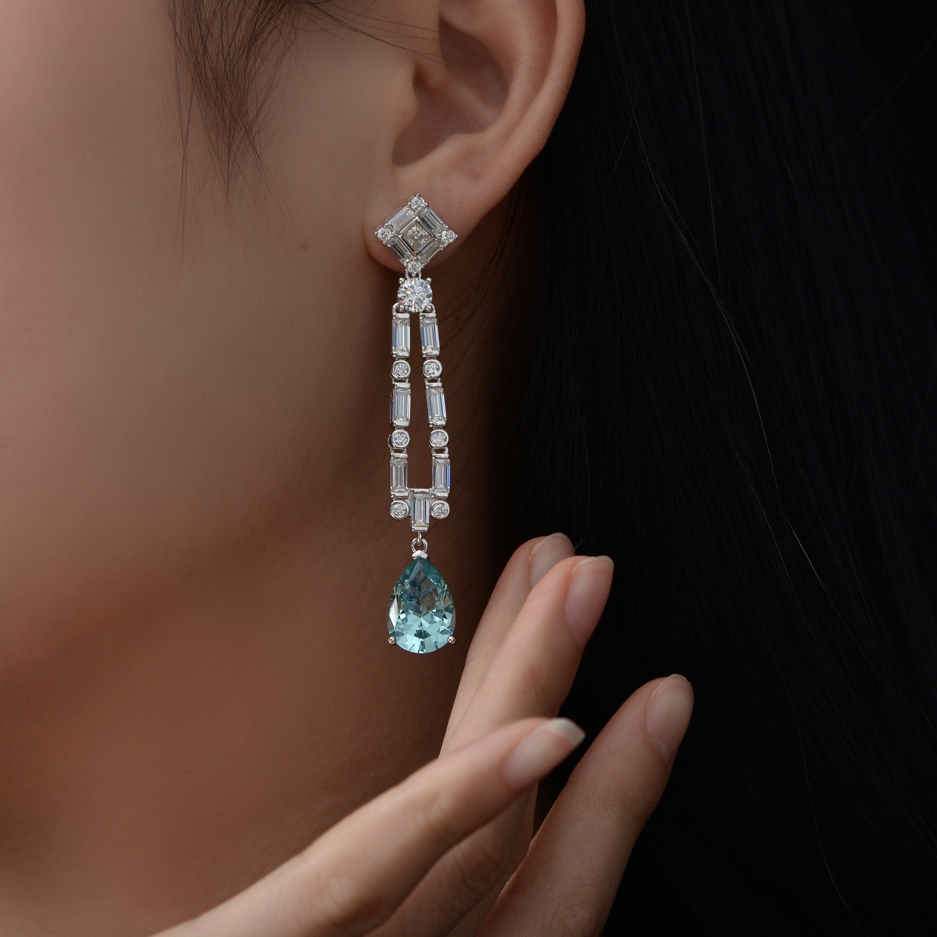 Elevate any outfit with these Solomon Pink 5-Carat Pear-Cut High Carbon Diamond earrings. Expertly crafted in sterling silver, their 10x14mm long drop fringe design blends classic elegance with contemporary flair. These earrings offer a sparkling statement that complements both European and American fashion styles, making them a versatile addition to your jewelry collection. Perfect for adding a touch of refined beauty to your look.