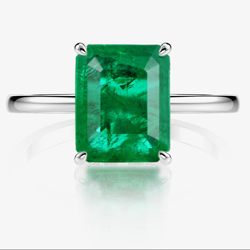 Emerald Green 4CT Radiant Simulated Diamond Ring in Sterling Silver – Ready to Ship