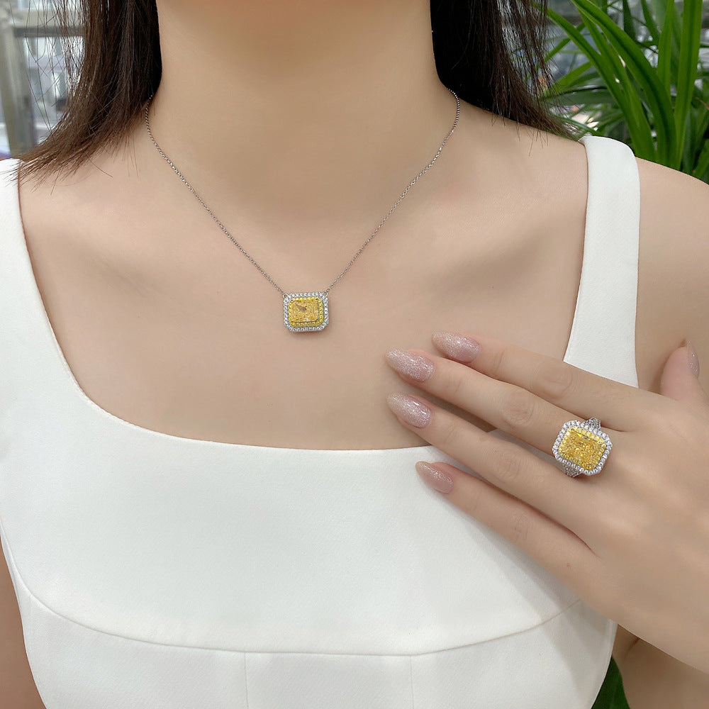 This exquisite 4-carat fancy yellow diamond ring features a unique Ice-Flower cut, highlighting its brilliance and distinctive rectangular 8×10mm design. Crafted from high carbon diamond, it offers remarkable durability alongside stunning luxury appeal. Perfect for those seeking a vibrant yet elegant statement piece, this ring combines exceptional quality and eye-catching color to celebrate your special moments.